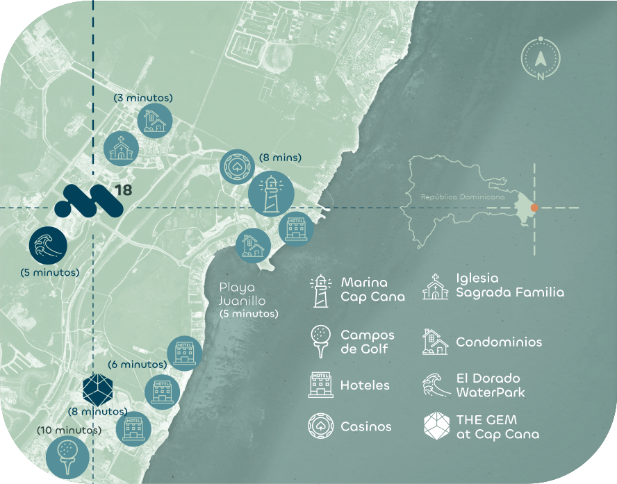 Meridiano 18 es un WorkLife District ubicado el Lake District, Cap Cana, que integra oficinas y servicios esenciales en un solo entorno.