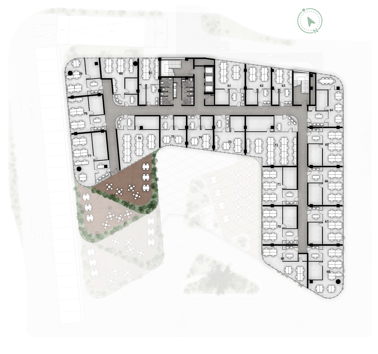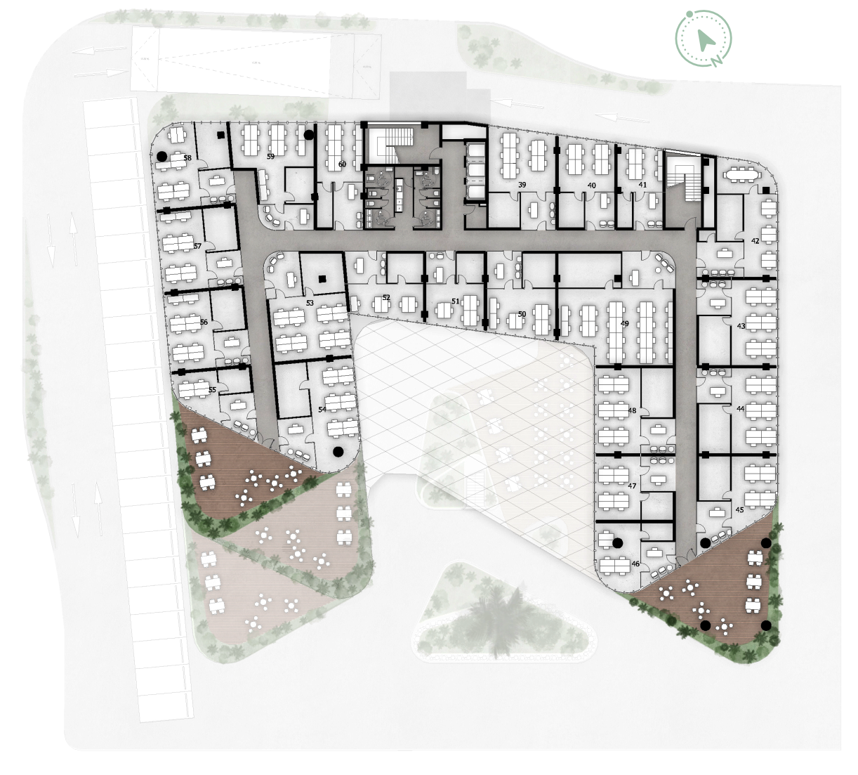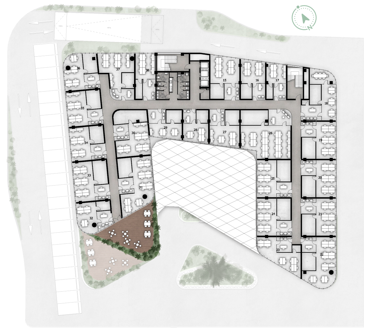 Meridiano 18 se ubica estratégicamente para articular la actividad corporativa y la oferta de servicios del área —oficinas, cafés, restaurantes, banco, minimarket y gimnasio—, consolidándose como un punto clave para la operación diaria y el uso real de Lake District.
