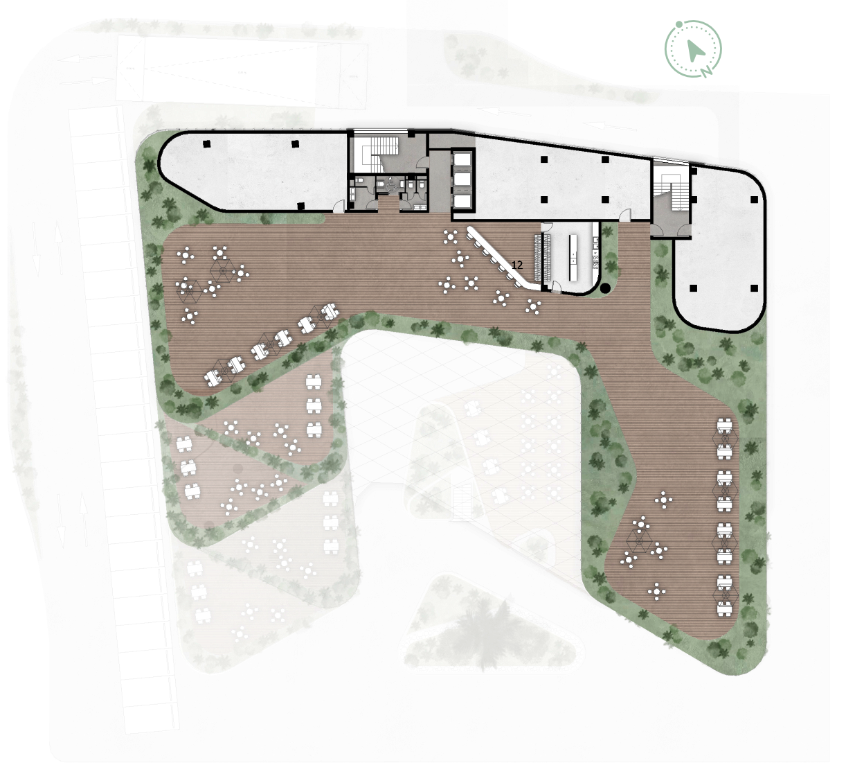 12 locales en piso 1, 2 y 6 (Rooftop)